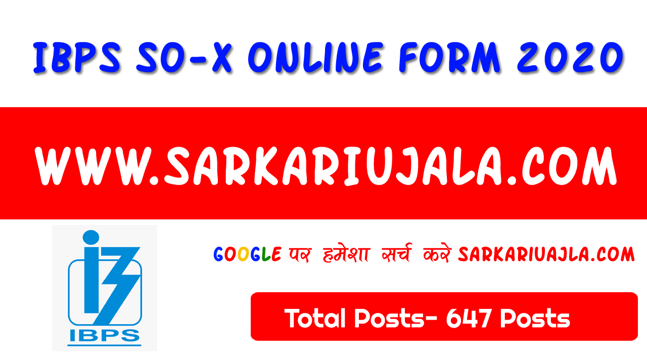 IBPS Specialist Officer SO X Recruitment 2020Post Name – Specialist Officer SO(Institute of Banking Personal Selection (IBPS)) Post Description – Institute of Banking Personal Selection (IBPS) is inviting online applications for Specialist Officer SO for 647 posts. Interested people meet all the eligibility criteria, apply online | |||||