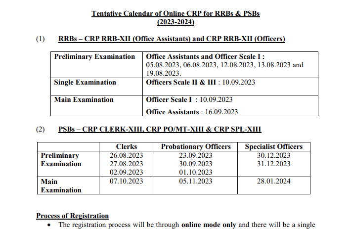 | Mains Exam | Clerk – 07-10-2023 P.O.- 05-11-2023 SPL Officer- 28-01-2024 | ||||
