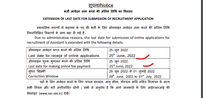 Post Description – ICAR IARI Indian Agricultural Research Institute is inviting online applications for Assistant for 462 posts. Interested people meet all the eligibility criteria, apply online Details Of Recruitment Of ICAR IARI Assistant Online Form 2022Posts Name – Assistant Number Of Posts – 462 Posts Category Wise Posts – Assistant (HQRS) – 71 Posts General – 44 Posts OBC – 16 Posts SC – 07 Posts ST – 01 Posts EWS – 03 Posts Assistant (ICAR) – 391 Posts General – 235 Posts OBC – 79 Posts SC – 41 Posts ST – 13 Posts EWS – 23 Posts Pay Scale – Assistant (HQRS) – Rs.44900/ – (Level 7) Assistant (ICAR) – Rs.35400/- (Level 6) Education Qualification – Bachelor Degree How to Apply Online ICAR IARI Assistant Online Form 2022 – Candidates can apply through link provided below or they can also apply through official site of the Indian Agricultural Research Institute before 01/June/2022. Required Documents For Online Application – Educational Mark sheet And Certificates Aadhar Card / Pan Card Passport Size Photo Signature Selection Mode – Written Examination Merit List