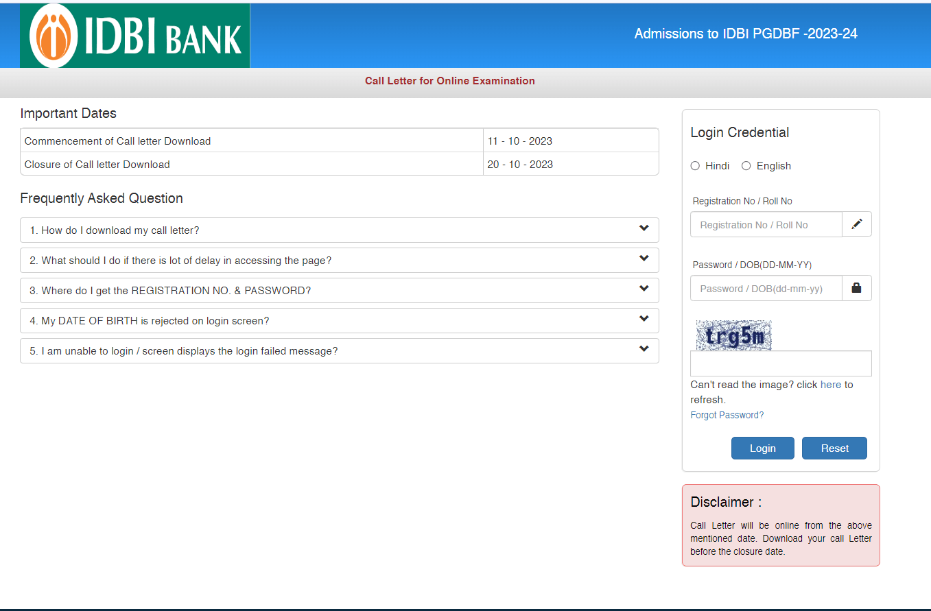 IDBI Bank Assistant Manager Admit Card 2023Post Name – Assistant Manager (8/2023-24)(IDBI BANK LTD.) | |||||