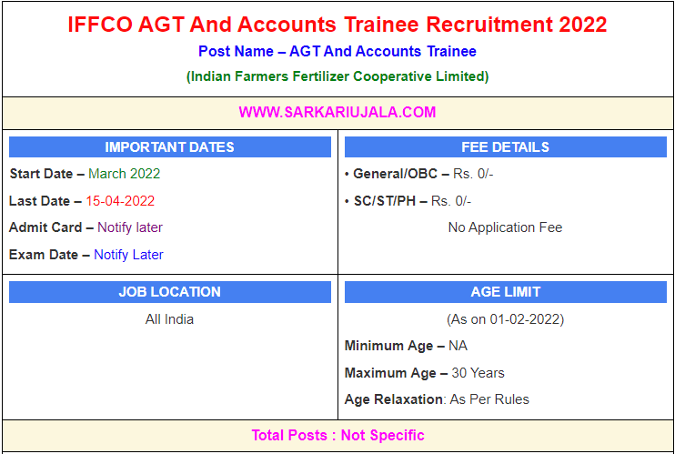 IFFCO AGT And Accounts Trainee Recruitment 2022Post Name – AGT And Accounts Trainee(Indian Farmers Fertilizer Cooperative Limited) | |||||
