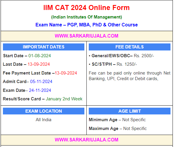 Details Of Recruitment Of IIM CAT 2024 Online Form