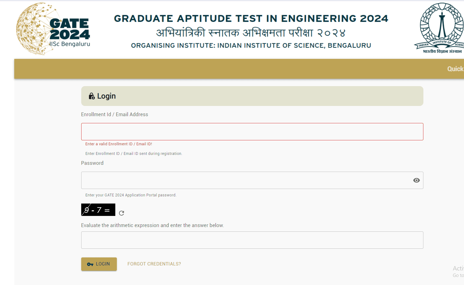 IIT GATE 2024 Online Form(Indian Institute of Science IIT Bengaluru) Exam Name –Graduate Aptitude Test in Engineering | |||||