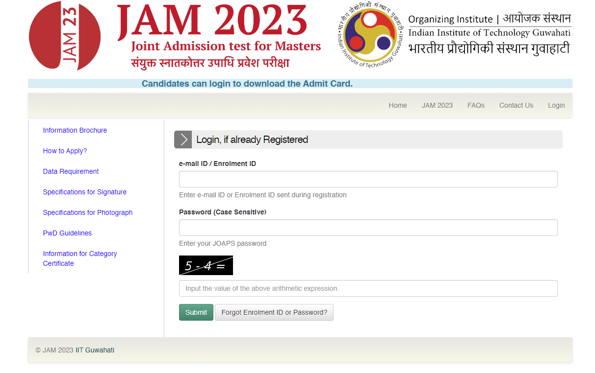 IIT JAM Admit Card 2023 | |||||