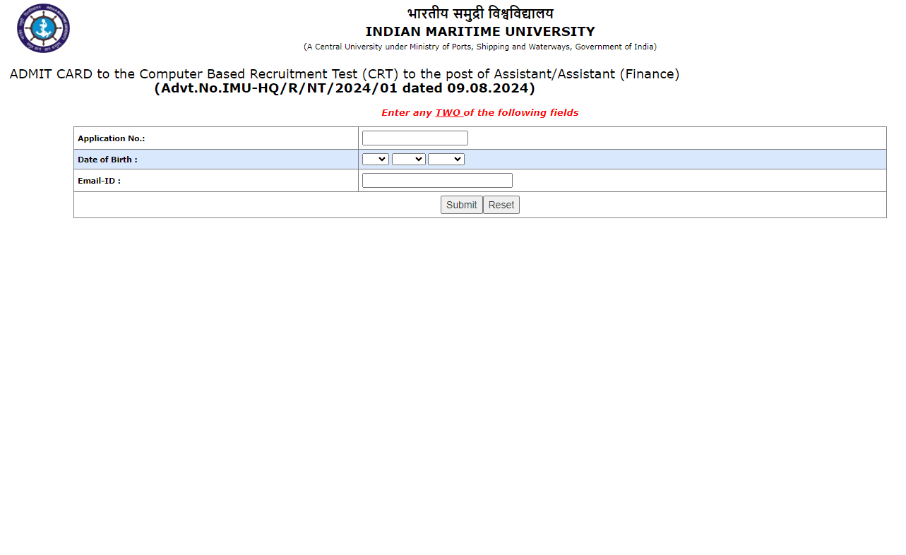 Post Description : IMU Indian Maritime University Has Been Released Admit Card For IMU Non-Teaching Online Form 2024. Which Exam Date Is 15 September 2024. Interested People Download Admit card With Using Your Roll No & DOB . Instructions for Downloading the IMU Non-Teaching Admit Card 2024 : 1. In order to download their IMU Non-Teaching Admit Card 2024 candidates are required to go to the important link section provided below. 2. After getting the link candidates need to click it for downloading their IMU Non-Teaching Admit Card. 3. Candidates need to provide their following details-: Registration No. /Roll No. DOB/Password Captcha Code(if specified) 4. After providing their details appropriately candidates will be able to download their IMU Non-Teaching Admit Card. 5.Candidates can also download their Admit Card from official site of the IMU.