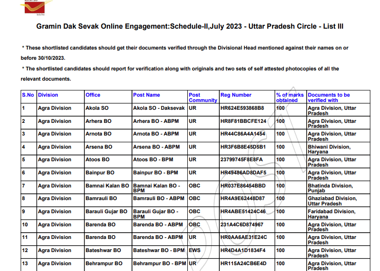 India Post GDS Recruitment 2023Post Name – Garmin Dak Sewak (July 2023)(Department of Post (India Post)) | |||||