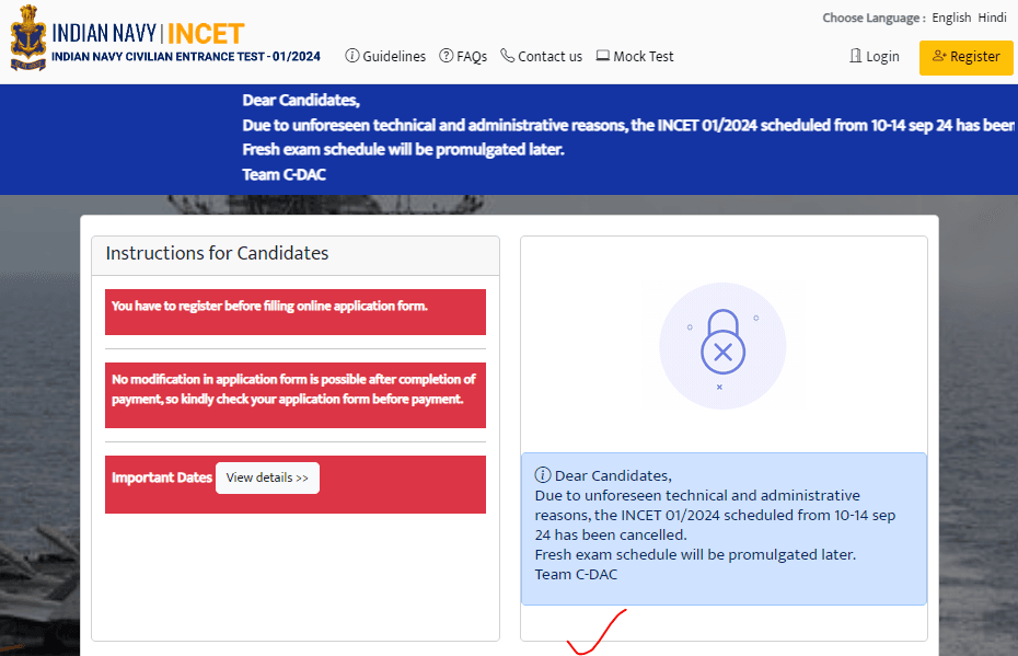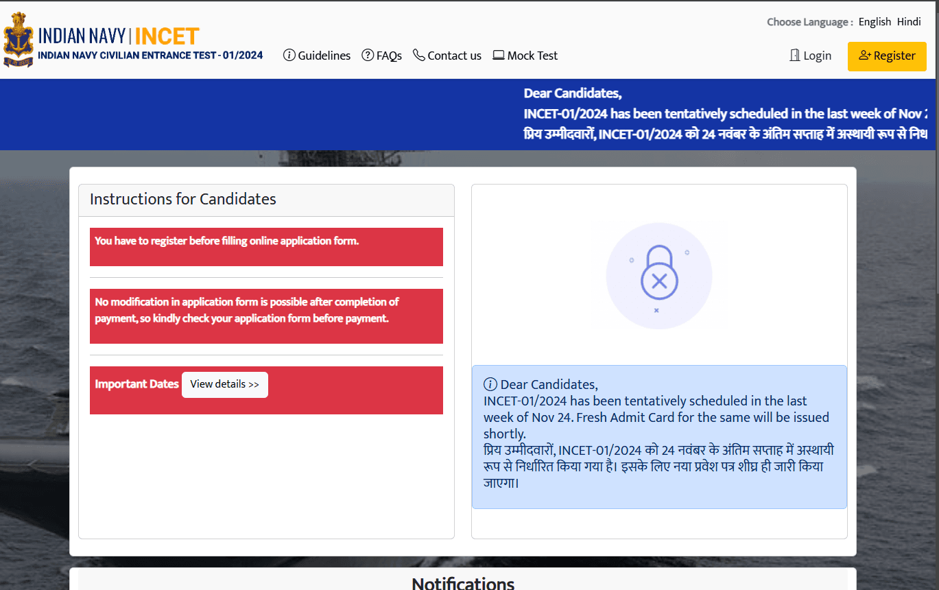 Indian Navy INCET-01/2024 Admit CardPost Name – Civilian Entrance Test (INCET-01/2024) (Indian Navy) | |||||