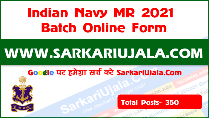 Post Description –Join Indian Navy is inviting online applications for MR October Batch for 350 posts. Interested people meet all the eligibility criteria, apply online Details Of Recruitment Of Indian Navy MR 2021 Batch Online FormPosts Name – Chef , Steward & Hygienist Number Of Posts – 350 Posts Pay Scale – Rs. 21,700/- To Rs. 69,100/- Education Qualification – 10th Class Passed From A Recognized Board. Physical Standard Height: 157 cm Chest : Minimum chest expansion of 5 cms Running- 1600 Meter in 7 Minute==. Push Up – 10 Uthak Baithak – 20 How to Apply Online Indian Navy MR 2021 Batch Online Form– Candidates can apply through link provided below or they can also apply through official site of the Join Indian Navy before 23/July/2021. Required Documents For Online Application – 10th Mark sheet And Certificates Aadhar Card / Pan Card Passport Size Photo Signature Selection Mode – Written Examination PET PST Medical Test Final Merit List