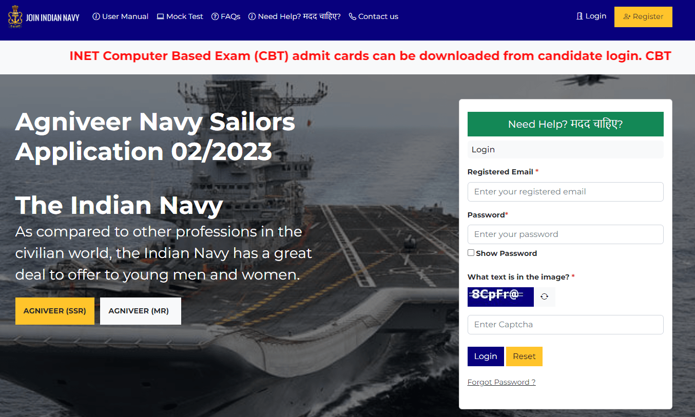 Indian Navy Agniveer SSR , MR Agniveer Admit Card 2023Post Name – SSR (02/2023 & 01/2024) (Male & Female)(Join Indian Navy) | |||||