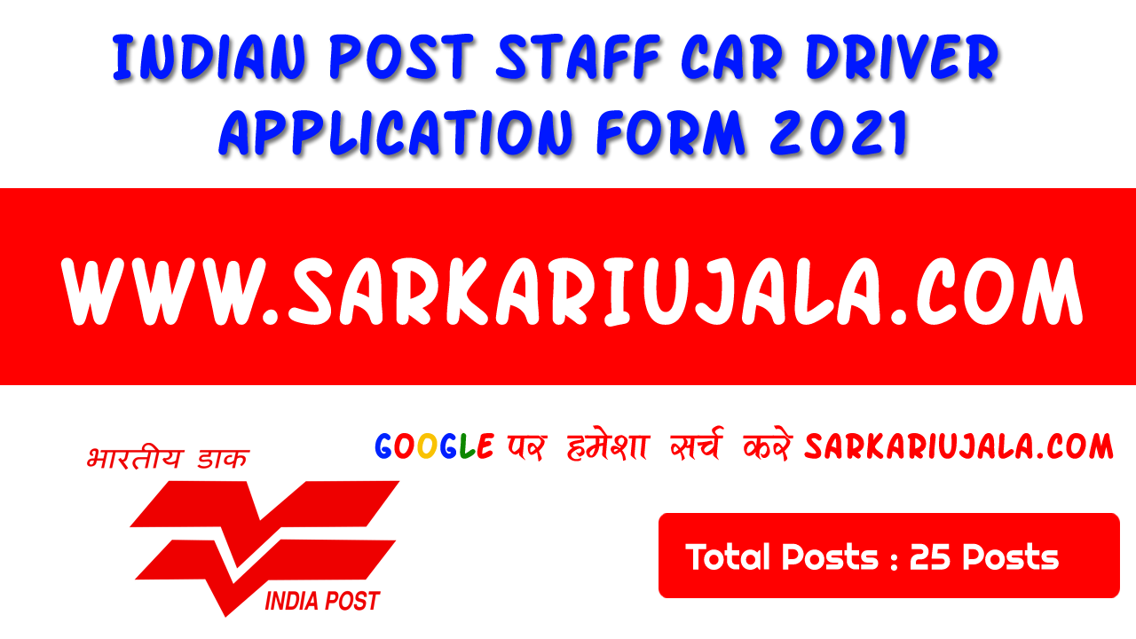 Post Description – Government of India, Department of Post is inviting online applications for Car Driver for 25 posts. Interested people meet all the eligibility criteria, apply online Details Of Recruitment Of Indian Post Staff Car Driver Application Form 2021Posts Name – Car Driver Number Of Posts – 25 Posts Category Wise Posts – General – 11 Posts OBC – 07 Posts SC – 04 Posts ST – 0 Posts EWS – 03 Posts Pay Scale – As Per Rules Education Qualification – 10th Class With Light/Heavy Driving Licensee & 3 Years Driving Experience) How to Apply Offline Indian Post Staff Car Driver Application Form 2021 – Candidates can apply through link provided below or they can also apply through official site of the Government of India, Department of Post before 26/May/2021. Applications should be sent for the above post in an envelope and the candidates should Superscribe on the application and envelope as “Application for the post of Staff car Driver (Ordinary grade) in Mail Motor Service, Chennai 600 006.” Required Documents For Online Application – 10th Mark sheet And Certificates HMV/LMV Driving License Aadhar Card / Pan Card Passport Size Photo Signature Selection Mode – Written Examination Skill/Driving Test Final Merit List