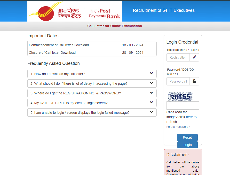 IPPB India Post Payments Bank Admit Card 2024Post Name- IT Executive(India Post Payments Bank) | |||||