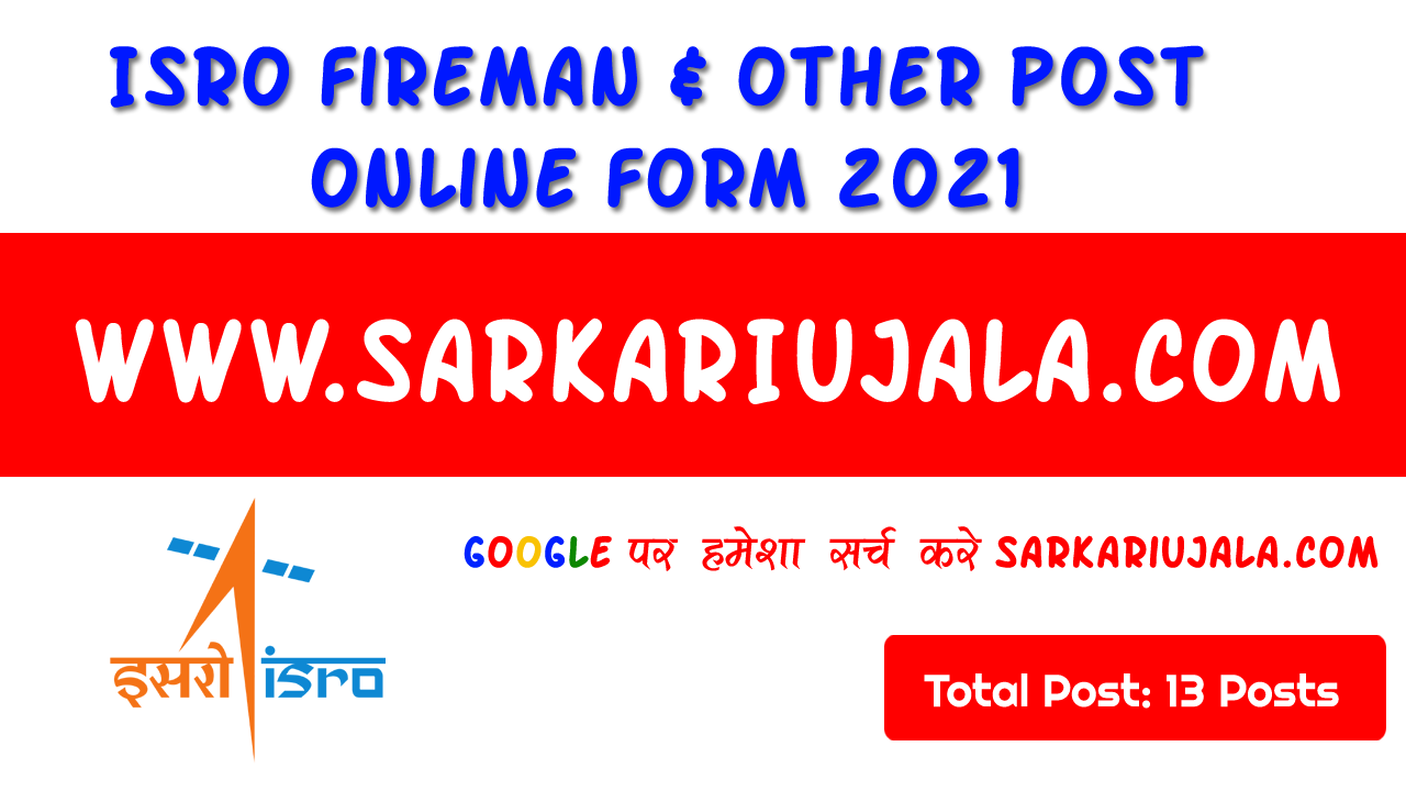 ISRO Fireman & Other Post Recruitment 2021Post Name – Fireman & Other Post(Vibram Sarabhai Space Center, ISRO) | |||||