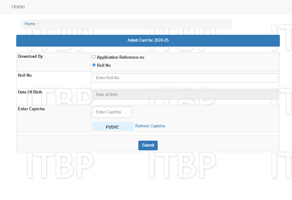 ITBP Various Post Admit Card 2025Post Name – Various Posts(Indo Tibetan Border Police Force) | |||||