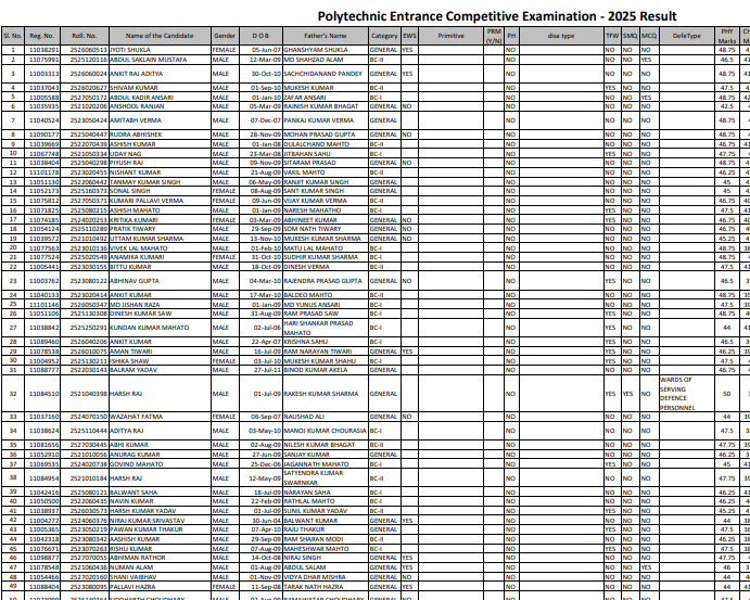 IMPORTANT DATESAdmit Card – 13-05-2025 Exam Date – 18-05-2025 Result Date- 02-07-2025 | VACANCY DETAILSExam Name – Jharkhand Polytechnic Entrance Exam 2025 Course Name – Polytechnic | ||||