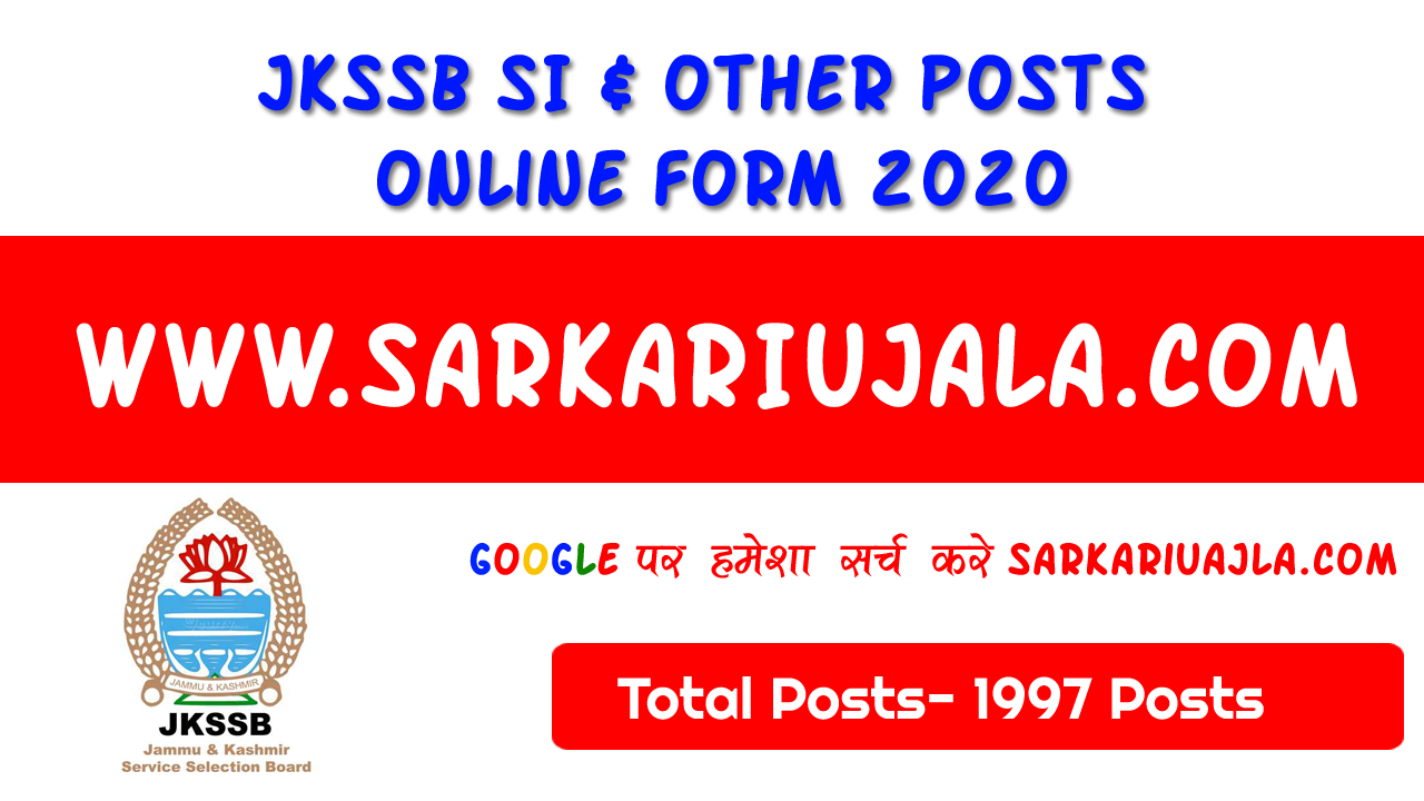 JKSSB SI & Other Posts Recruitment 2020
