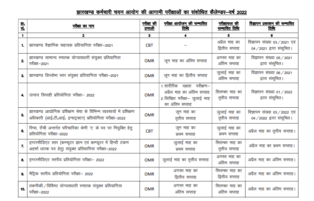 JSSC Exam Calendar 2022(Jharkhand Staff Selection Commission)Post Name – Various Recruitment Examination Conducted by JSSC | |||||