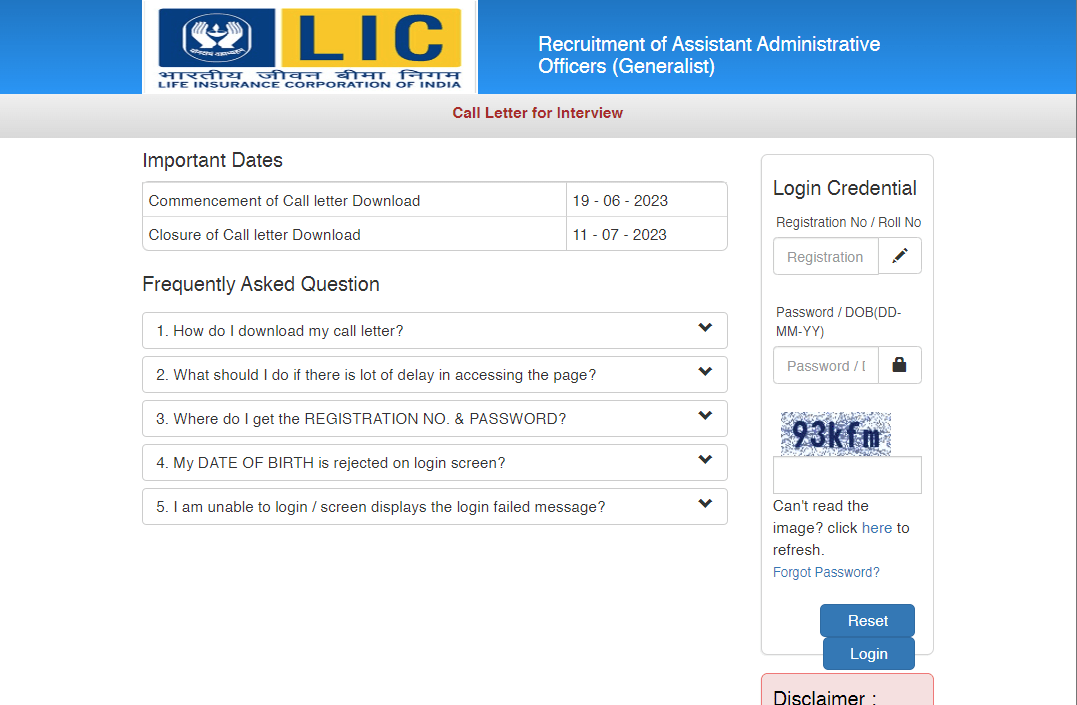 LIC AAO Admit Card 2023Post Name – Assistant Administrative Officers(Life Insurance Corporation Of India) | |||||