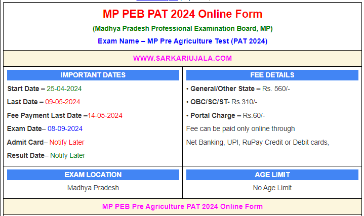 MP PEB Pre Agriculture PAT 2024 Online Form | |||||