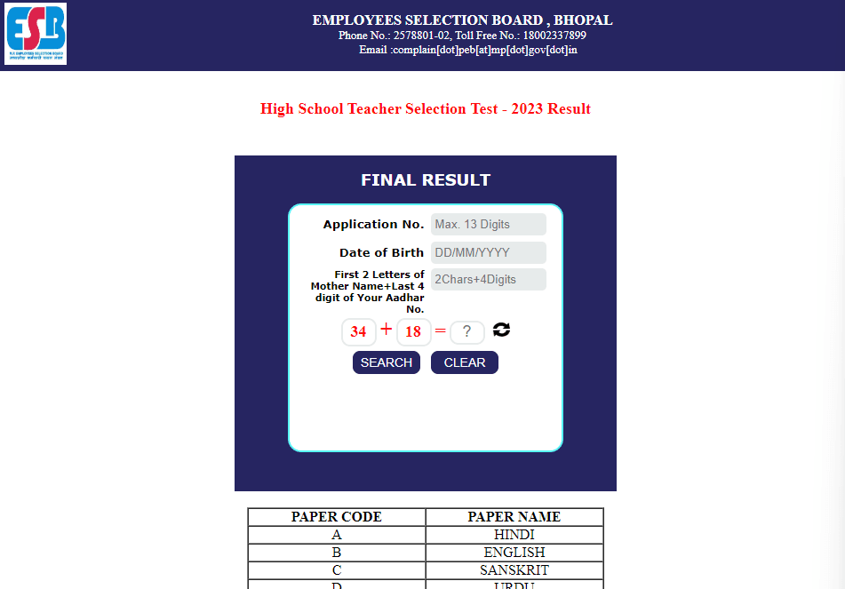 MP High School Selection Test Admit Card 2023Post Name – High School Teacher Selection Test(Madhya Pradesh Employee Selection Board) | |||||