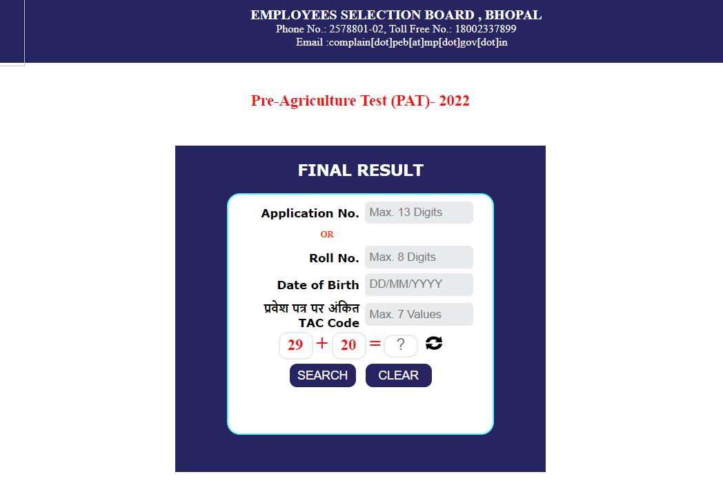 MP PEB PAT 2022 Online Form(Madhya Pradesh Professional Examination Board, MP) Exam Name – MP Pre Agriculture Test (PAT 2022) | |||||