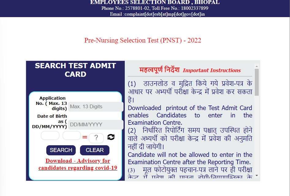MP PEB PNST Admit Card 2022Exam Name – MP Pre Nursing Selection Test(Madhya Pradesh Professional Examination Board) | |||||