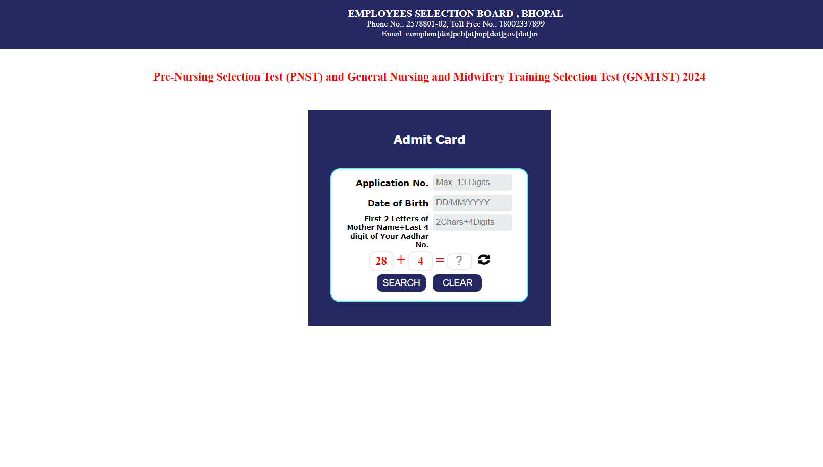 MP PEB PNST Admit Card 2024Exam Name – MP Pre Nursing Selection Test(Madhya Pradesh Professional Examination Board) | |||||