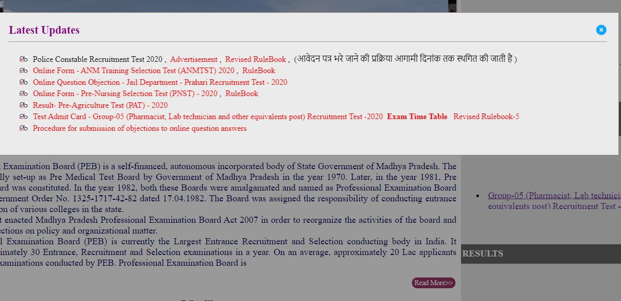Post Description –Madhya Pradesh Police Service Board Board, MP Police Department is inviting online applications for Police Constable for 4269 posts. Interested people meet all the eligibility criteria, apply online Details Of Recruitment Of MP Police Constable Online Form 2020Posts Name – Police Constable Number Of Posts – 4000 Posts Category Wise Posts – Constable (GD) – 3862 Posts General – 1043 Posts OBC – 1043 Posts SC – 617 Posts ST – 772 Posts EWS – 387 Posts Constable (Radio) – 138 Posts General – 38 Posts OBC – 38 Posts SC – 21 Posts ST – 17 Posts EWS – 14 Posts Pay Scale – Rs.19500 – 62000/- + Grade Pay Rs.1900/- Education Qualification – Constable (GD)- 10th Or 12th Class Pass From A Recognised Board. Constable (Radio)- 12th Class Pass With ITI/Diploma/BE. Btech And Having Computer Typing Knowledge In Hindi And English. Physical Standard Height & Chest For General/OBC/SC Height: 168 cm (Male), 155Cm (Female) Chest : 81cm -86 Cm Height & Chest For ST– Height: 160 cm (Male), 155Cm (Female) Chest – 76cm – 81 cm Running- 800 Meter in 2 Minute 45 Second (Male) ,800 Meter in 4 Minute (Female) Gola Throw – 7 Kg Gola 19 Feet (Male), 4 KG Gola 15 Feet(Female) Long Jump – 13 feet (Male ) In 3 Chance, 10 Feet In 3 Chance (Female) How to Apply Online MP Police Constable Online Form 2020 – Candidates can apply through link provided below or they can also apply through official site of the MP Online Services Selection Board before 07/Jan/2021. Required Documents For Online Application – 10th / 12th Mark sheet And Certificates Aadhar Card / Pan Card Passport Size Photo Signature Selection Mode – Written Examination PET PST Final Merit List