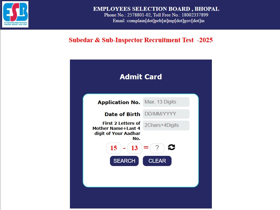 MPESB MP Police Subedar & SI Admit Card 2025Post Name – Subedar (Stenographer)/ ASI (Ministerial)(Madhya Pradesh Employee Selection Board) | |||||