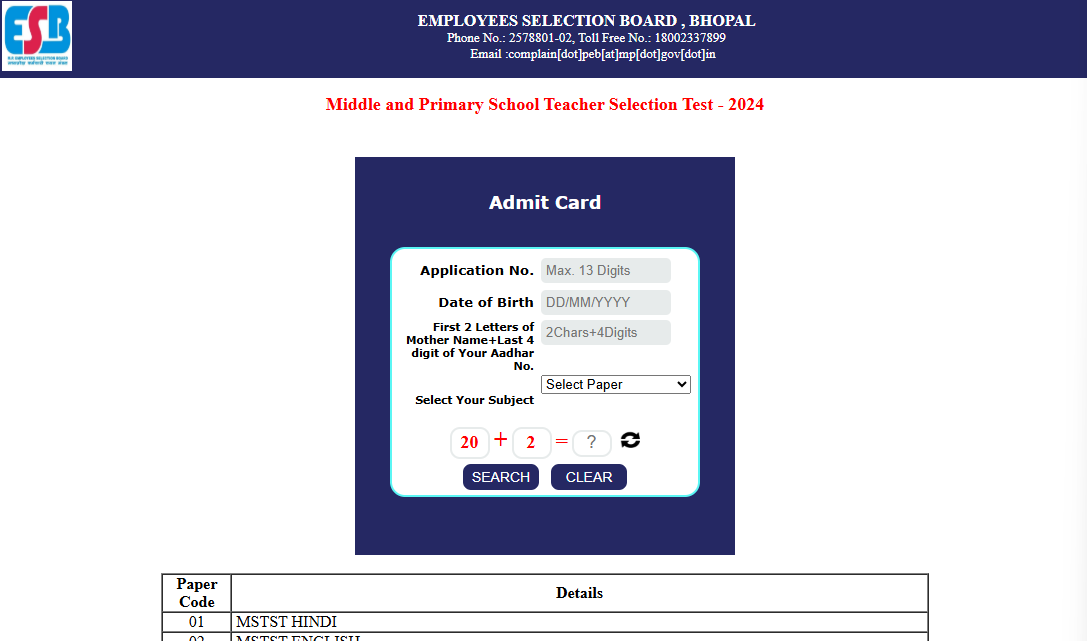 4. After providing their details appropriately candidates will be able to download their MP Primary & Middle School Teacher Admit Card.