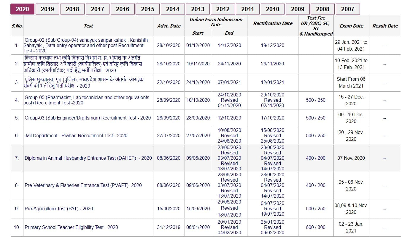 IMPORTANT DATESAdmit card- 24-02-2022 Exam Date– 05-03-2022 Answer Key – 29-03-2022 Result Date– 08-08-2022 Revised Result Date– 01-10-2022 | VACANCY DETAILSExam Name – MP Teacher Eligibility Test (TET) 2020 Total Vacancy –As Per Rules | ||||