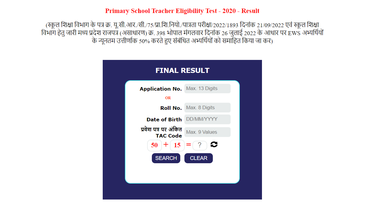Madhya Pradesh TET Result 2022(Madhya Pradesh Professional Examination Board)Post Name –Teacher Eligibility Test (TET) | |||||