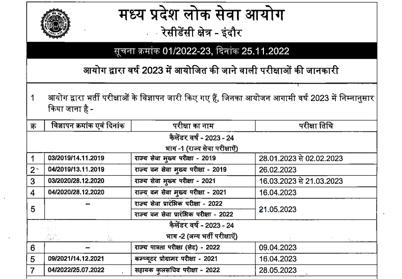 MPPSC Annual Calendar 2023Post Name – Various Posts(Madhya Pradesh Public Service Commission) | |||||