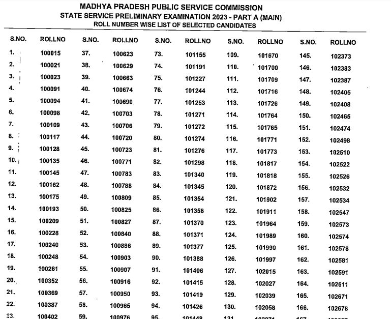IMPORTANT DATESAdmit Card – 08-12-2023 Exam Date – 17-12-2023 Answer Key – 20-12-2023 Result Date – 18-01-2024 | VACANCY DETAILSExam Name – MPPSC Pre Recruitment 2023 Total Vacancy- 227 Posts Advt. No. – 31/2023 | ||||