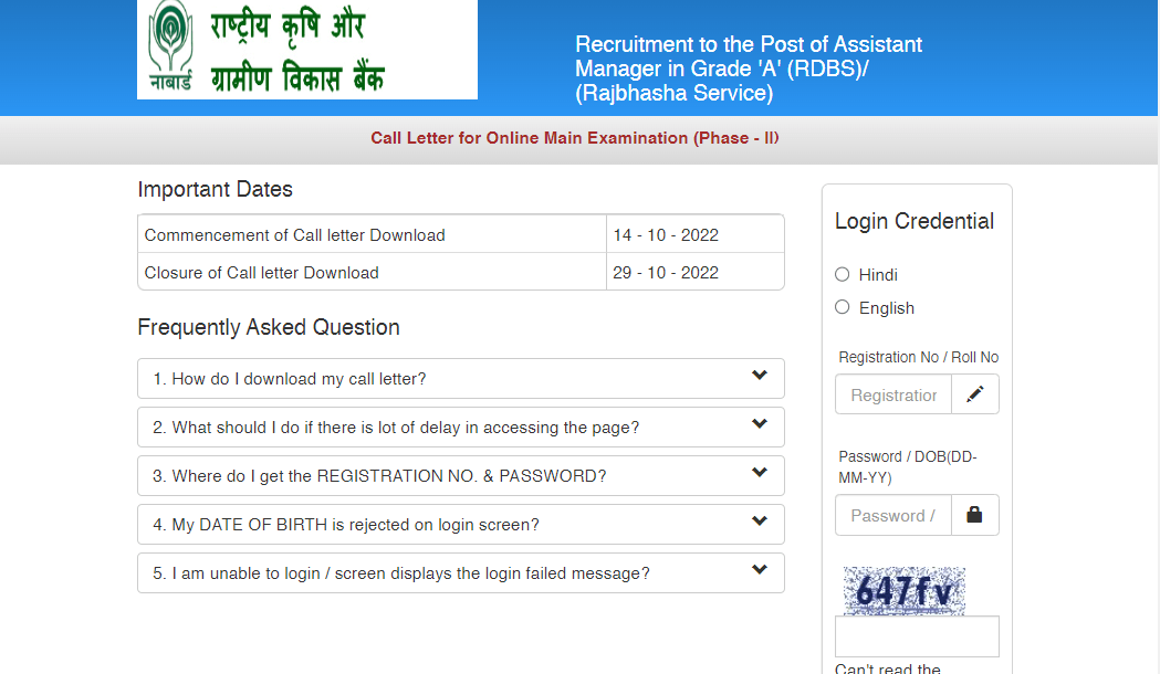 Post Description : NABARD National Bank for Agriculture and Rural Development Has Been Released Admit Card For NABARD Assistant Manager Online Form 2022. Which Exam Date Is 07 Sep 2022. Interested People Download Admit card With Using Your Roll No & DOB . Instructions for Downloading the NABARD Assistant Manager Admit Card 2022 : 1. In order to download their NABARD Assistant Manager Admit Card 2021 candidates are required to go to the important link section provided below. 2. After getting the link candidates need to click it for downloading their NABARD Assistant Manager Admit Card. 3. Candidates need to provide their following details-: Registration No. /Roll No. DOB/Password Captcha Code(if specified) 4. After providing their details appropriately candidates will be able to download their NABARD Assistant Manager Admit Card. 5.Candidates can also download their Admit Card from official site of the NABARD.