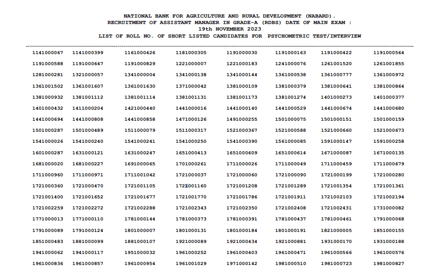 NABARD Assistant Manager Admit Card 2023Post Name – Assistant Manager (Grade A)(National Bank for Agriculture and Rural Development) | |||||