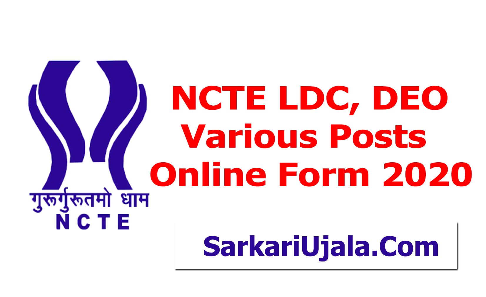 Details Of Recruitment Of NCTE LDC, DEO Various Posts Online Form 2020Posts Name – LDC, DEO, Stenographer, Assistant Number Of Posts – 18 Posts Assistant – 03 Post Stenographer C – 03 Post Stenographer D – 06 Post Data Entry Operator DEO – 01 Post Lower Division Clerk – 05 Post Pay Scale – As Per Rules Education Qualification – Assistant – Graduation in Any Stream in Any Recognized University in India. Stenographer C – 10+2 Intermediate Pass in Any Recognized Board in India. With English / Hindi Shorthand : 100 WPM Computer Skill of Data Entry and Word Processing. Stenographer D – 10+2 Intermediate Pass in Any Recognized Board in India. With Dictation : 10 Mts @ 80 WPM Transcription : 65 Mts English & 75 Mts Hindi on Manual Typewriter. OR Computer Typing : English 50 Mts / Hindi 65 Mts. Data Entry Operator DEO – 10+2 Intermediate Pass in Any Recognized Board in India. 15000 Key Depression Per Hours for DEO. Lower Division Clerk – 10+2 Intermediate Pass in Any Recognized Board in India. Typing : English 35 WPM OR Hindi 30 WPM. How to Apply Online NCTE LDC, DEO Various Posts Online Form 2020 – Candidates can apply through link provided below or they can also apply through official site of the National Council for Teacher Education before 19/September/2020. Required Documents For Online Application – Educational Mark sheet And Certificates Aadhar Card / Pan Card Passport Size Photo Signature Selection Mode – Written Examination Final Merit List