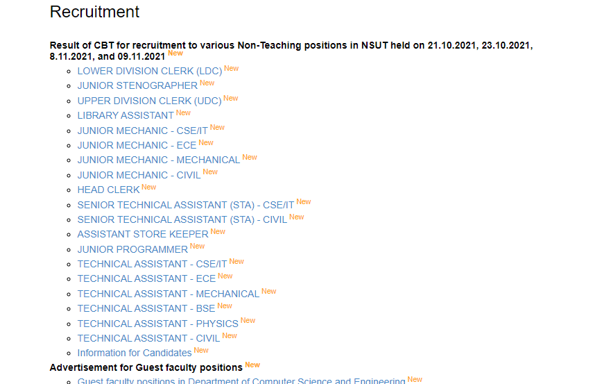 NSIT Delhi Recruitment 2021Post Name – LDC, UDC, Steno, Head Clerk, TA And Other Posts(Netaji Subhas University of Technology, Delhi) | |||||
