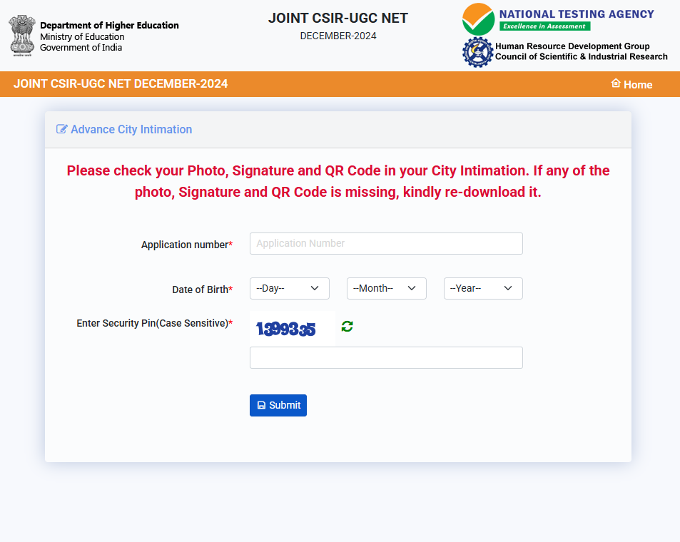 NTA CSIR UGC NET Admit Card 2025Course Name – JRF & Lectureship/Assistant Professor (December 2024)(NTA – Council of Scientific & Industrial Research) | |||||