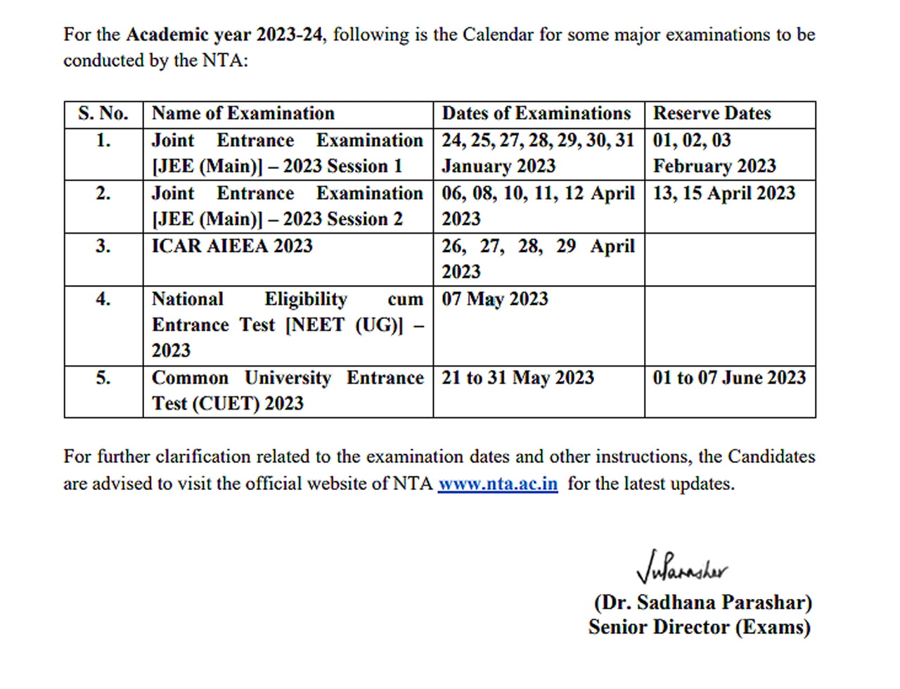 Download NTA Exam Calendar 2023 | Click Here | ||||