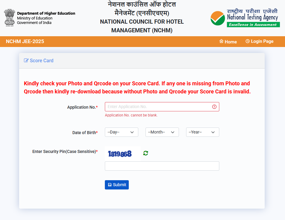 NTA NCHM JEE Admit Card 2025Exam Name – Hotel Management Joint Entrance Examination(National Testing Agency) | |||||