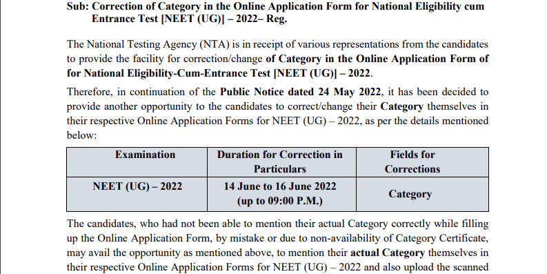 NTA NEET 2022 Online Form(National Testing Agency) Exam Name – National Eligibility Cum Entrance Test | |||||