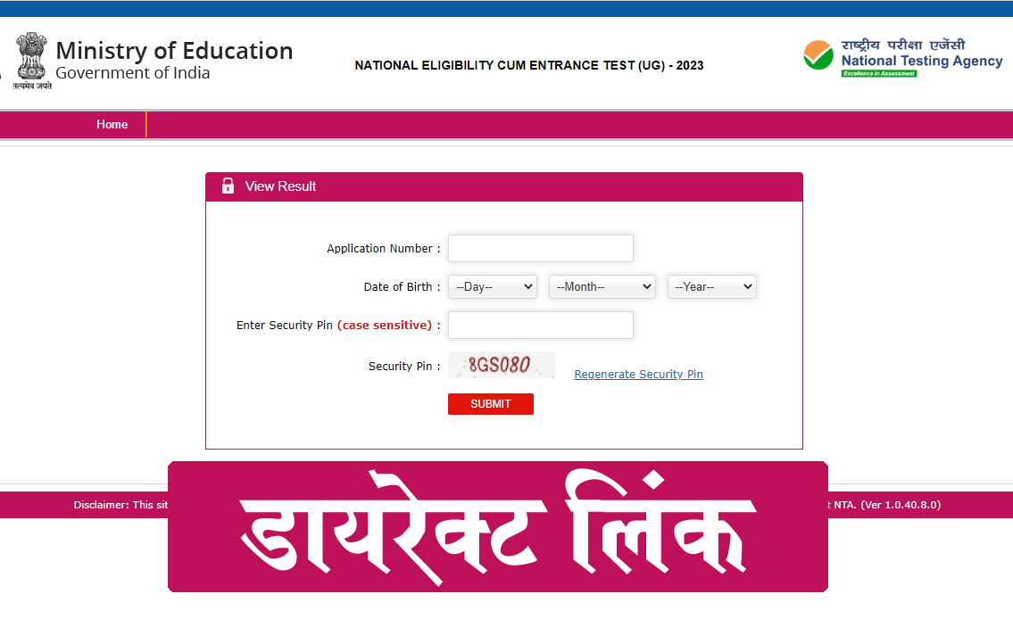 IMPORTANT DATESExam Date City – 30-04-2023 Admit Card – 04-05-2023 Exam Date – 07-05-2023 Answer Key – 05-06-2023 Result – 13-06-2023 | VACANCY DETAILSExam Name – National Eligibility Cum Entrance Test Course Name – UG SESSION – 2023 | ||||