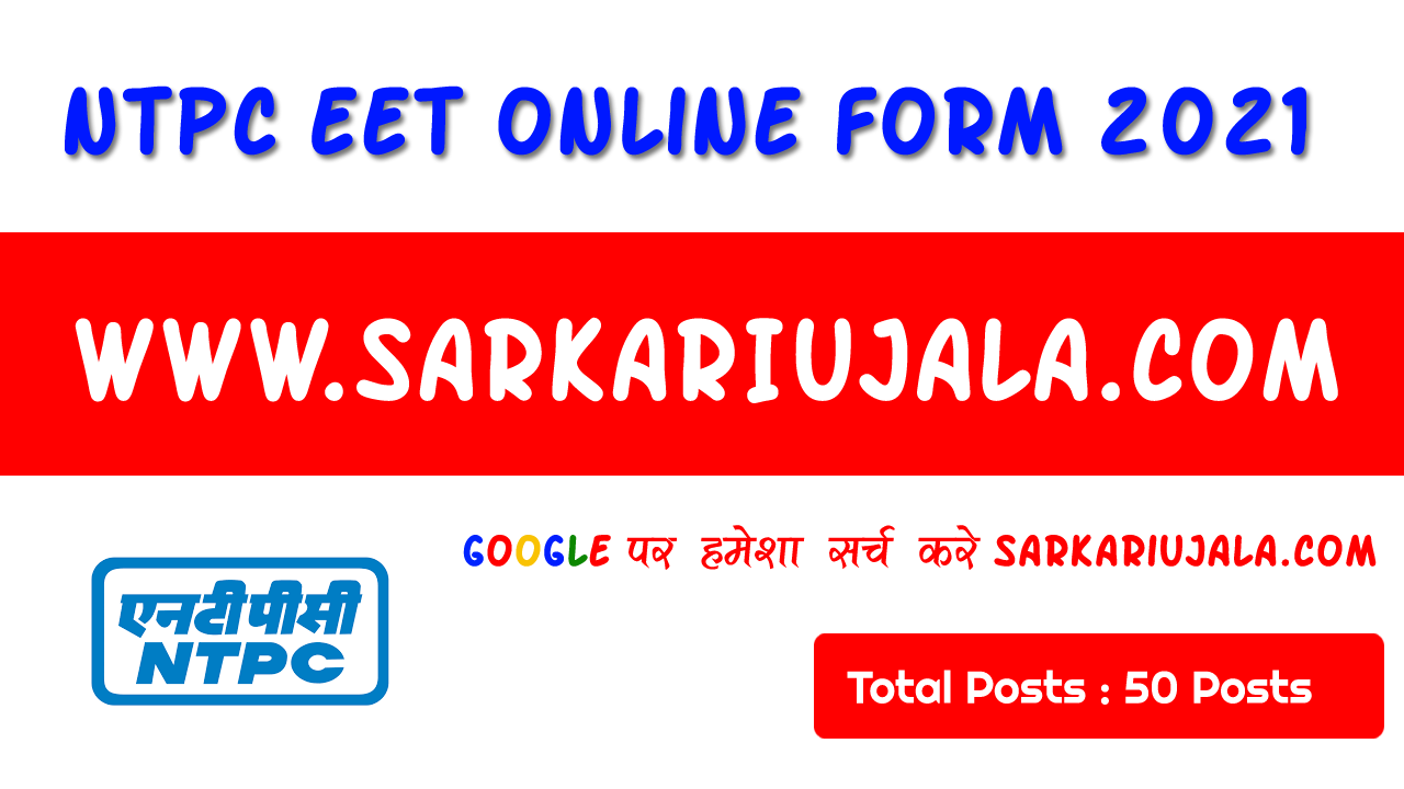 Post Description – National Thermal Power Corporation is inviting online applications for Engineering Executive Trainee for 50 posts. Interested people meet all the eligibility criteria, apply online Details Of Recruitment Of NTPC EET Online Form 2021Posts Name – Engineering Executive Trainee Number Of Posts – 50 Posts Category Wise Posts – Electrical – 22 Posts Mechanical – 14 Posts Electronics Instrumentation – 14 Posts Pay Scale – As Per Rules Education Qualification – Candidates Must be Appear in GATE 2021 Examination BE / B.Tech 4 Year Engineering Degree in Related Post With 65% Marks (55% Marks For SC/ST/PwD) How to Apply Online NTPC EET Online Form 2021 – Candidates can apply through link provided below or they can also apply through official site of the National Thermal Power Corporation before 06/May/2021. Required Documents For Online Application – 10th / 12th Mark sheet And Certificates Aadhar Card / Pan Card Passport Size Photo Signature Selection Mode – Written Examination Interview Final Merit List