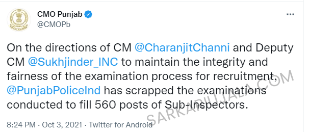 Punjab Police SI Recruitment 2022Post Name – Sub-Inspector(Punjab Police Recruitment Board) | |||||