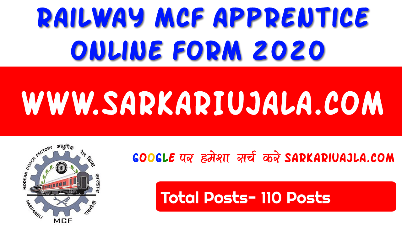 Railway MCF Apprentice Recruitment 2020Post Name – MCF Apprentice(Indian Railways Modern Coach Factory Raebareili) Post Description –Indian Railways Modern Coach Factory Raebareili is inviting online applications for MCF Apprentice for 110 posts. Interested people meet all the eligibility criteria, apply online | |||||
