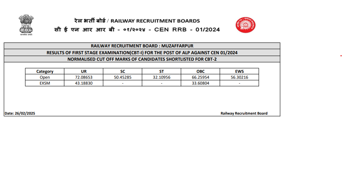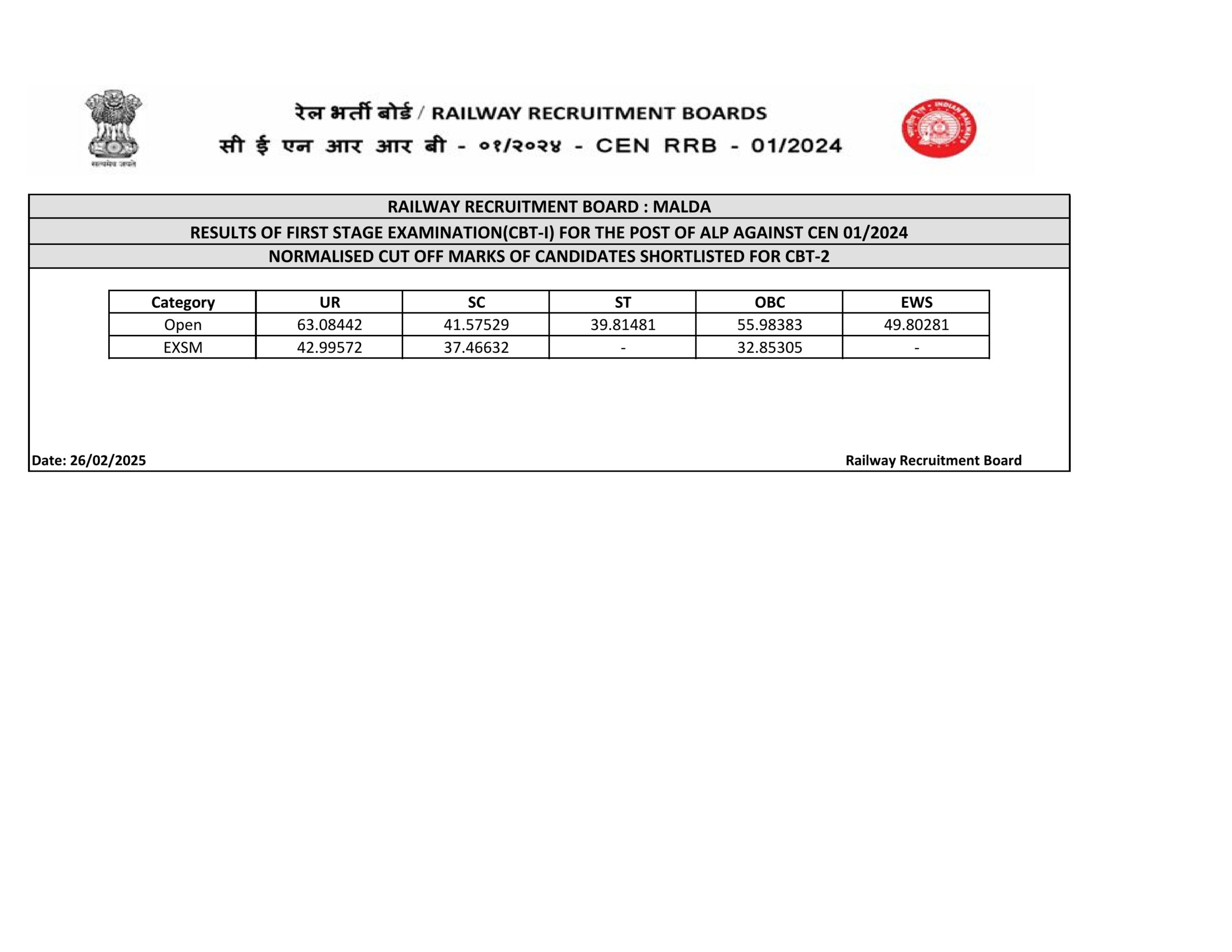 Post Description : The Government of India, Ministry of Railways, has released the answer key for the RRB Assistant Loco Pilot (ALP) recruitment exam 2024 (CEN- 01/2024). The exam was conducted from November 25 to 29, 2024, and the admit cards were available four days before the exam. The exam city details were announced on November 15, 2024. The answer key was made available on December 5, 2024. This recruitment drive is aimed at filling 5,696 posts through a Computer Based Test (CBT) exam. For more details, visit SarkariUjala.Com Instructions for Downloading the RRB ALP Assistant Loco Pilot 01/2024 Admit Card : 1. In order to download their RRB ALP Assistant Loco Pilot 01/2024 Online Form candidates are required to go to the important link section provided below. 2. After getting the link candidates need to click it for downloading their RRB ALP Assistant Loco Pilot 01/2024 Admit Card. 3. Candidates need to provide their following details-: Registration No. /Roll No. DOB/Password Captcha Code(if specified) 4. After providing their details appropriately candidates will be able to download their RRB ALP Assistant Loco Pilot 01/2024 Admit Card. 5.Candidates can also download their Admit Card from official site of the RRB. | |||||