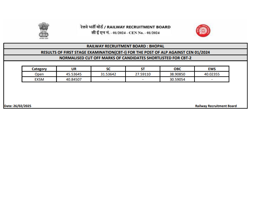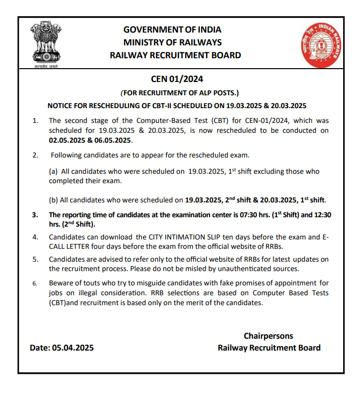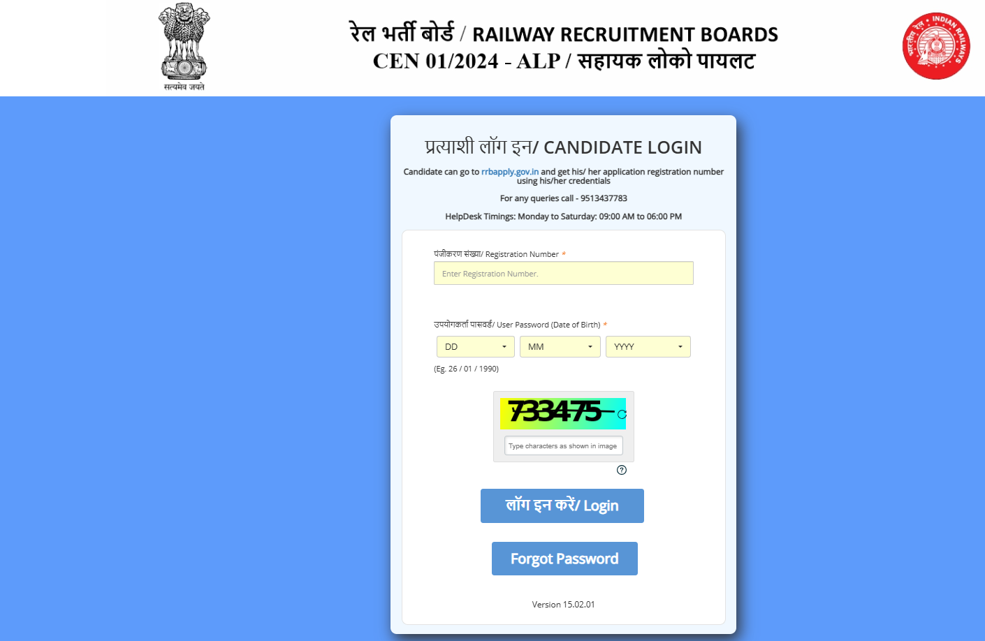 RRB ALP Assistant Loco Pilot 01/2024 Admit Card 2024Post Name – Assistant Loco Pilot (CEN- 01/2024)(Government Of India , Ministry Of Railways) | |||||