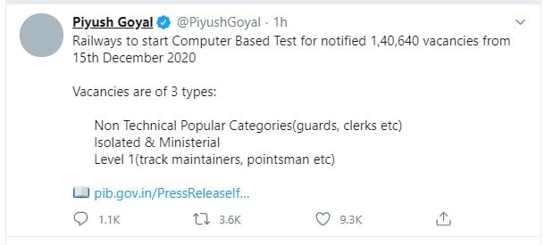IMPORTANT DATESAdmit Card – 24-12-2020 Answer Key- 16-08-2021 Result Date- 14-01-2022 Revised Result – 30-03-2022 CBT II Admit Card – 05-05-2022 CBT II Phase I Exam Date- 09-10 May 2022 CBT II Answer Key(Level 6)– 13-05-2022 CBT II Phase II Exam Date – 12-17 June 2022 CBT II Answer Key (Level 2,3,5)– 22-06-2022 CBAT Date – 30-07-2022 Typing Test- 12-08-2022 CBAT Score – 14-09-2022 | VACANCY DETAILSPost Name– RRB Railway NTPC Online Form 2019 Total No of vacancy – 35,208 Posts | ||||