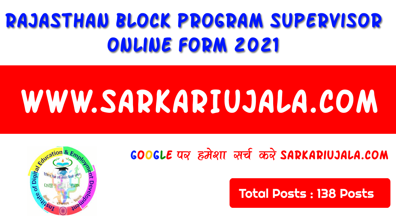 Post Description – Rajasthan Digital Shiksha and Rojgar Vikas Sansthan is inviting online applications for Block Program Supervisor BPS for 138 posts. Interested people meet all the eligibility criteria, apply online Details Of Recruitment Of Rajasthan Block Program Supervisor Online Form 2021Posts Name – Block Program Supervisor BPS Number Of Posts – 138 Posts Pay Scale – DSRVS.CPC – PB 2800 Education Qualification – Bachelor Degree in Any Stream in Any Recognized University in India. How to Apply Online Rajasthan Block Program Supervisor Online Form 2021 – Candidates can apply through link provided below or they can also apply through official site of the Rajasthan Digital Shiksha and Rojgar Vikas Sansthan before 15/April/2021. Required Documents For Online Application – Educational Mark sheet And Certificates Aadhar Card / Pan Card Passport Size Photo Signature Selection Mode – Written Examination Final Merit List