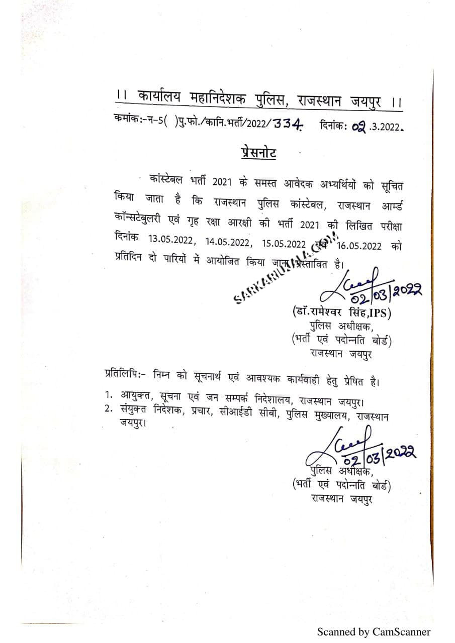 Post Description : Police Department Of Rajasthan has declared the exam date of online form Constable posts , which is 13-16 May 2022. and the information of which is SarkariUjala.Com is giving you first, hope you will get a lot of help and now there are few days left for the exam, so now you have to prepare for the exam very well, our best wishes are with you! And keep checking SarkariUjala.Com for new updates like this. Instruction for Downloading Rajasthan Police Constable Admit Card 2022 : 1. In order to download their Rajasthan Police Constable Admit Card candidates need to go to the important link section provided below. 2. After getting the link candidates need to click it for downloading their Rajasthan Police Constable Admit Card . 3. Candidates are required to provide their following details-: Registration No. /Roll No. DOB/Password Verification Code(if specified) 4. After providing their details appropriately candidates will be able to download their Rajasthan Police Constable Admit Card . 5. Candidates can also download their Rajasthan Police Constable Admit Card from official site of the Police Department Of Rajasthan.